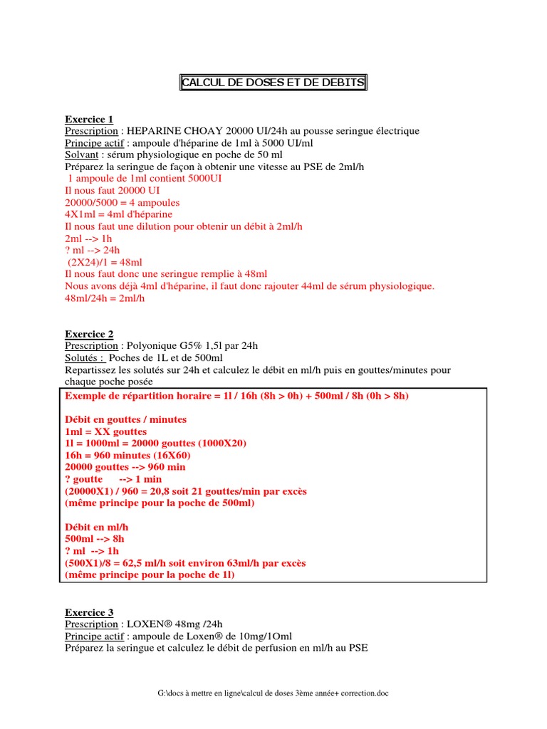 Calcul De Doses 3eme Annee Correction Morphine Chlorure De Potassium